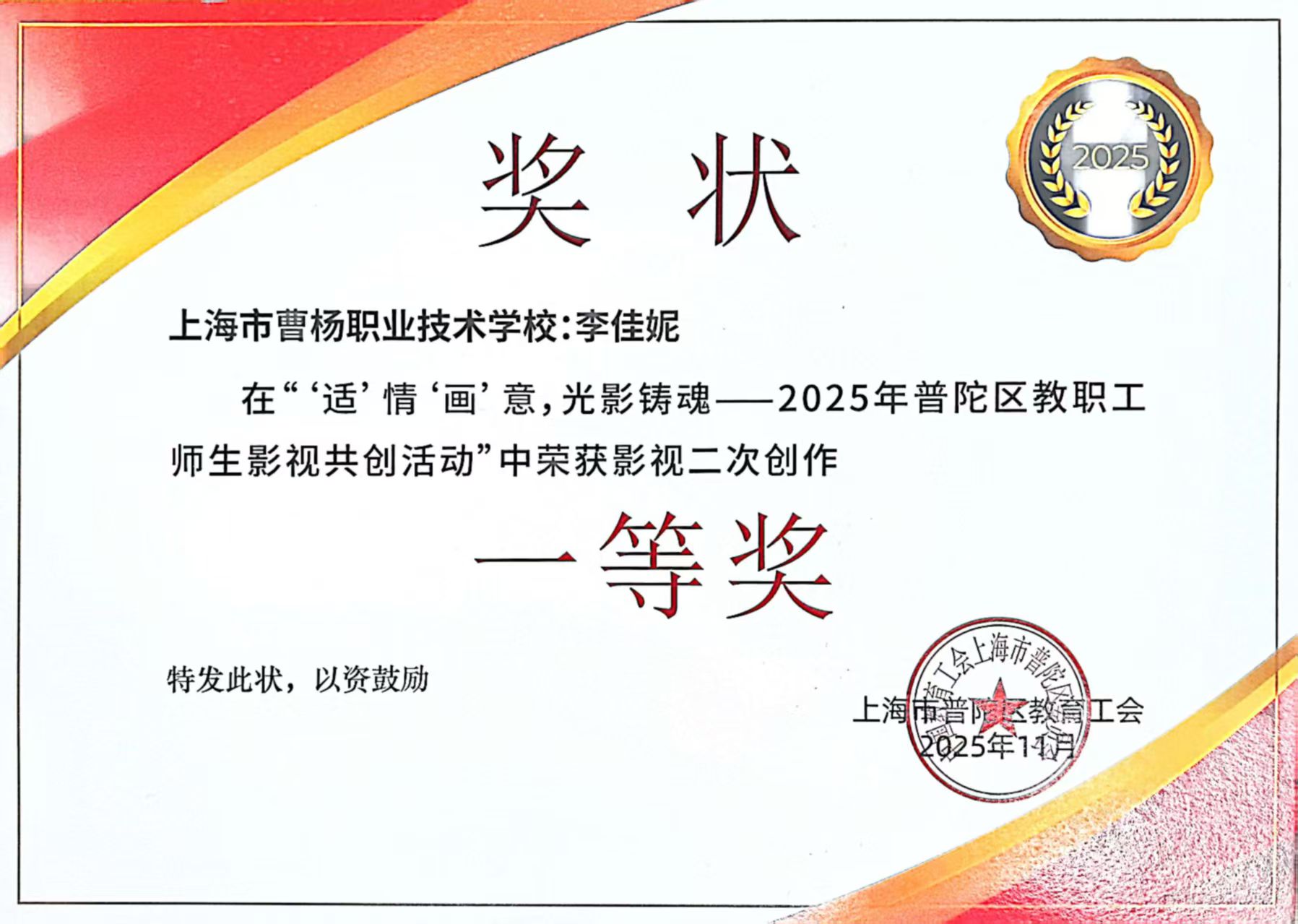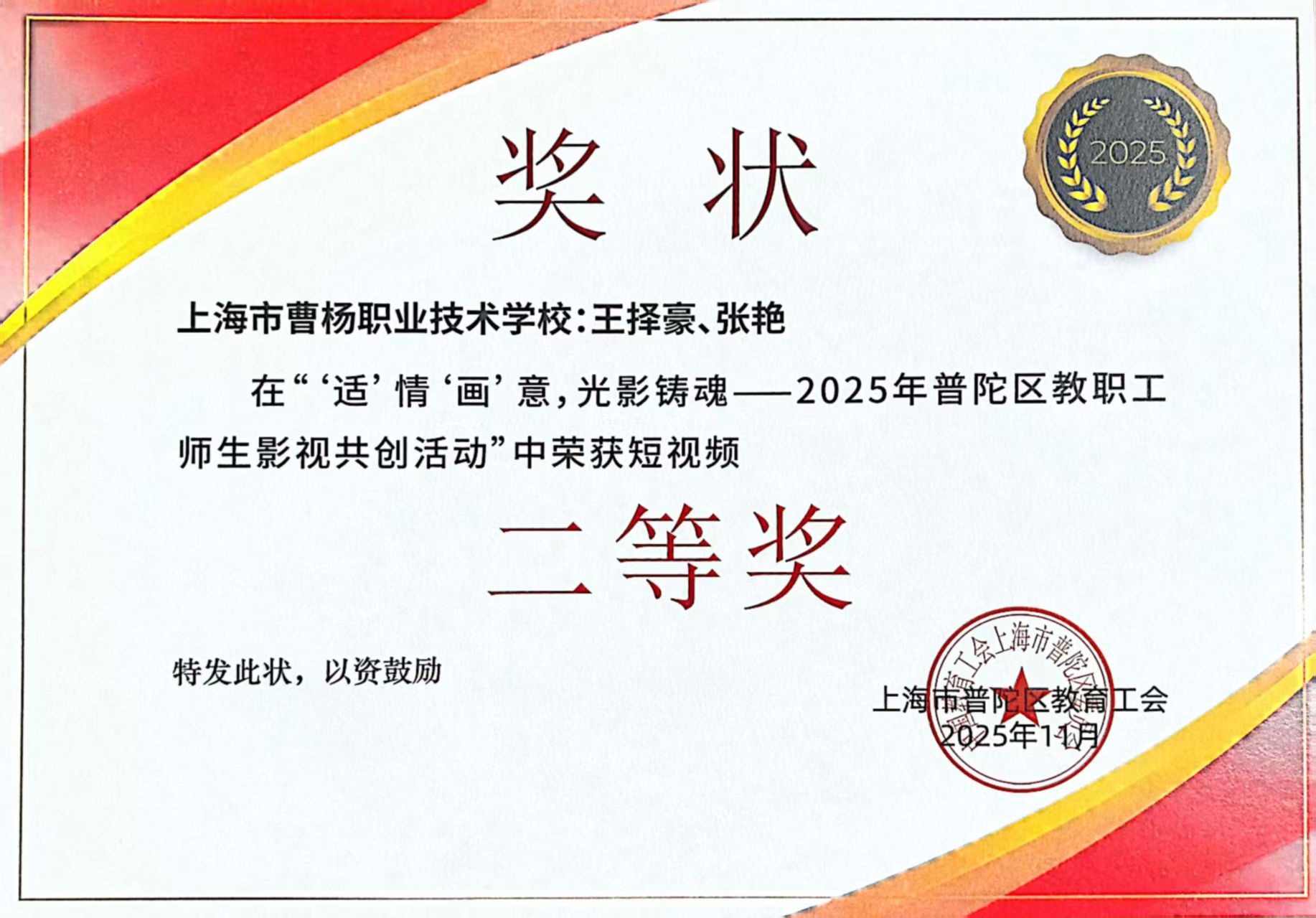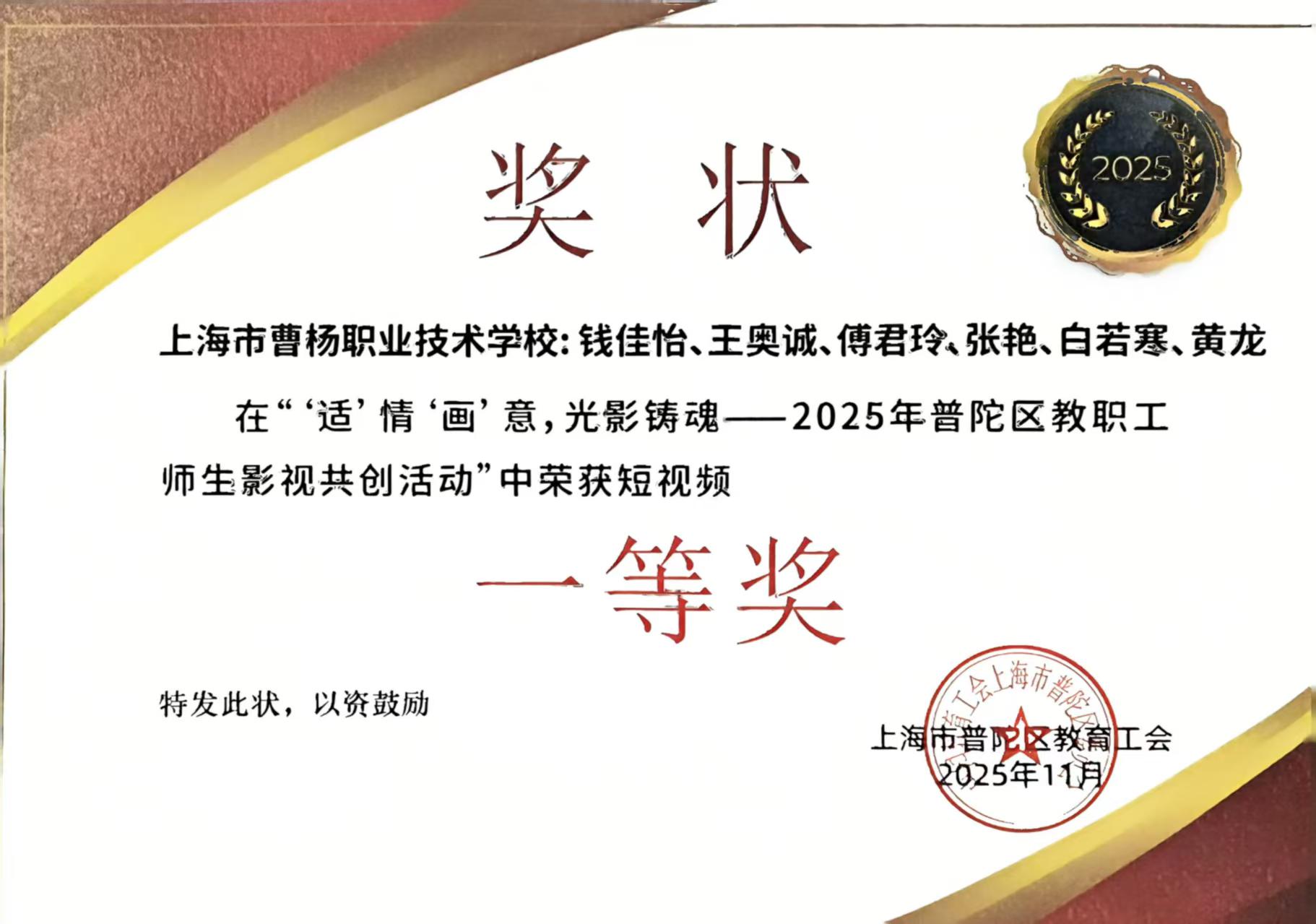 光影为笔,时代为卷。此次大赛的累累硕果,是曹杨职校师生才华与匠心的精彩亮相,更是学校立德树人、实践育人成效的生动体现。从《绿脉启新程》的宏大叙事,到《我的记者梦》的个体追寻,再到《每道齿痕都是成长的刻度》的细腻哲思,每一部作品都不仅是技术的展示,更是情感的共鸣、思想的传递与责任的担当。展望未来,曹杨职校将继续以光影铸魂,以匠心筑梦,在职业教育的高质量发展征程中,让每一份热爱都有回响,让每一束微光都汇成星河。